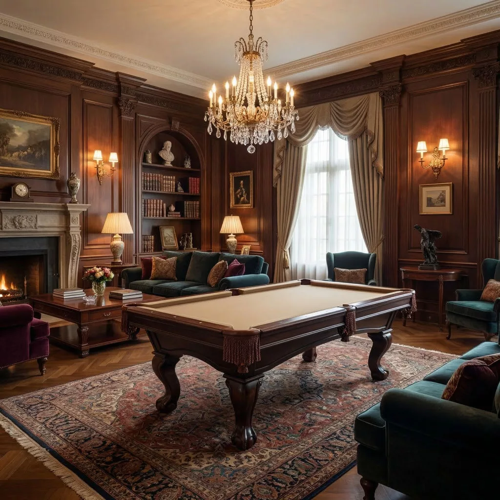 Krásne vypracovaný drevený dizajnový biliardový stôl s bridlicovou hracou plochou.