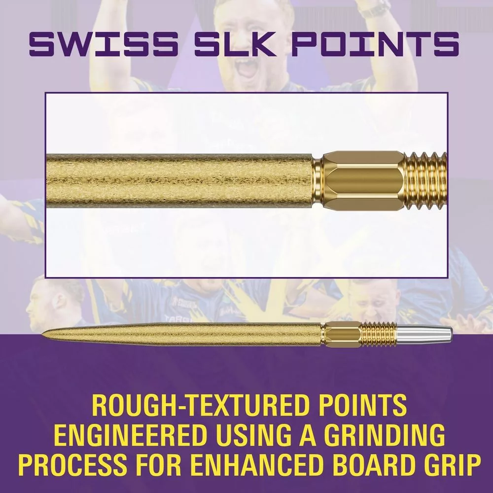 Target Swiss SLK 30mm zlaté sú špičkové hroty navrhnuté pre profesionálnych hráčov, ktoré