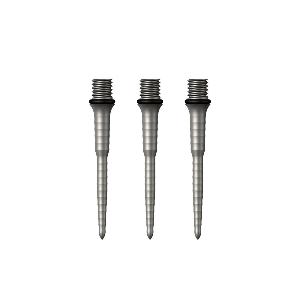 Hroty Titan Ripple sú vyrobené z jedného kusu titánu, ktorý zaisťuje extrémnu pevnosť, nízku hmotnosť a obrovskú odolnosť voči korózii. Zložité opracovanie vytvára na hrote obrysy, ktoré hráčom poskytujú dodatočnú priľnavosť a vyzerajú jednoducho úchvatne. Hroty Titan Ripple sú dodávané so silikónovými O-krúžkami, ktoré zabezpečia pevné a neuvolňujúce spojenie hrotov s telíčkami šípok.