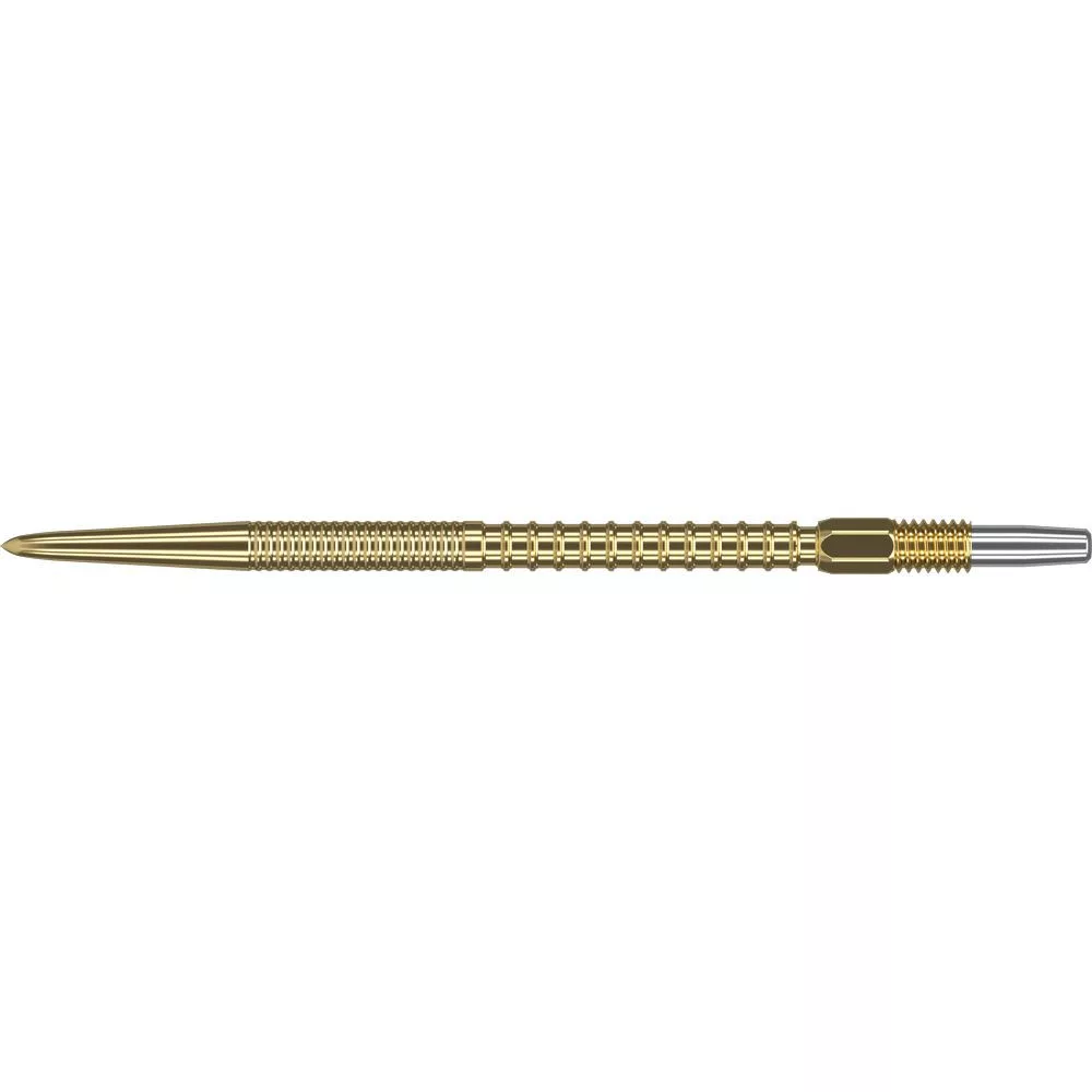 Predajné balenie obsahuje 3 kovové náhradné hroty Target Swiss Fire Point zlaté, 40mm.