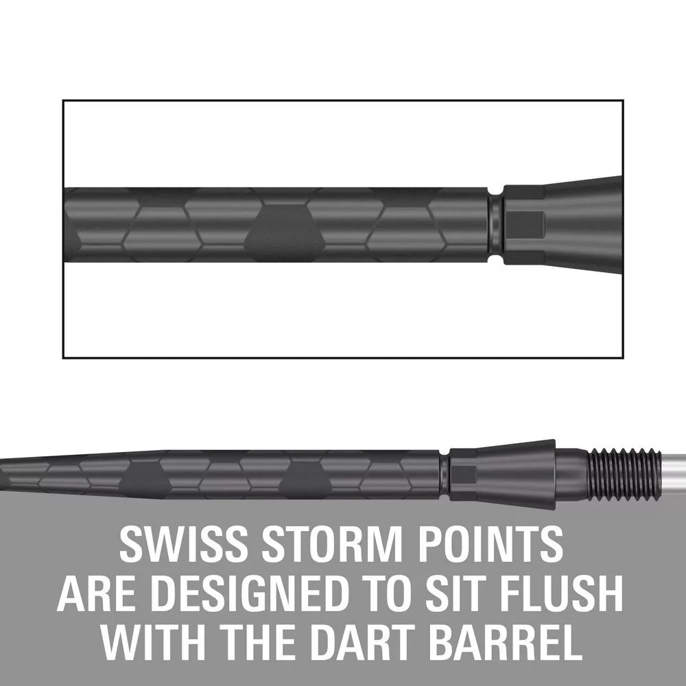 Hroty Storm Onyx s jedinečným dizajnom vytvoreným pomocou bodového lasera poskytujú extra priľnavosť prstom a pomáhajú šípkam bezpečne sa zapichnúť do terča. Vyrobené sú z prvotriednej nehrdzavejúcej ocele a ďalej sú zušľachtené procesom vákuového kalenia. Tieto hroty ponúkajú zvýšenú odolnosť a zníženie odchýlky letu šípok.