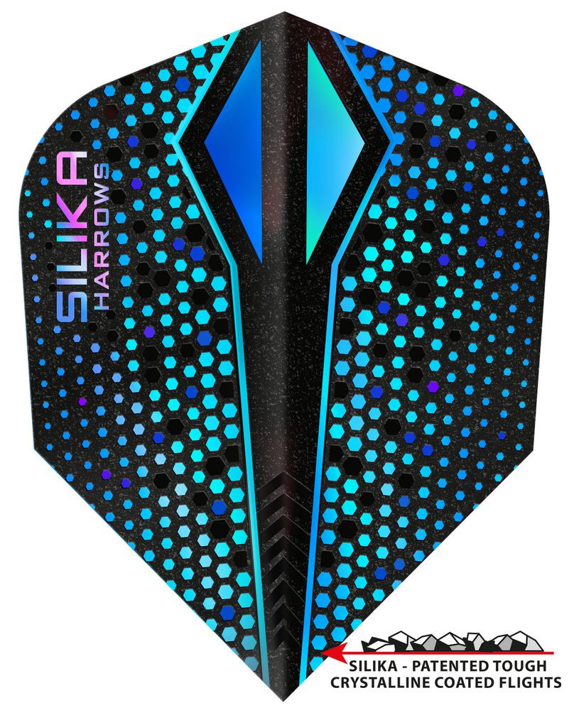 Ultra-tvrdá povrchová vrstva Silika - zatiaľ najsilnejšie letky Harrows. Textúrovaný povrch zväčšuje plochu, čo spomaľuje a stabilizuje dráhu letu. Centrálna Silika zóna pre zvýšenú stabilizáciu medzi násadkou a letkou. Silika, navrhnutá a vyrobená vo Veľkej Británii, je úplne nový produktový rad, ktorý sa nepodobá ničomu inému na trhu. Prémiové letky sú vyrobené s hrúbkou 100 mikrónov. Silika povlak obsahuje drobné čiastočky, ktoré dávajú letkám úplne jedinečný vzhľad a pocit spolu so zlepšeným výkonom. Jednou z najdôležitejších vlastností letiek Silika je ich odolnosť. Pridanie Silika povlaku výrazne zvyšuje pevnosť a zároveň chráni letky a minimalizuje poškodenie. Podobne ako pri brúsnom papieri je jeho povrch drsný. Pri hádzaní zväčšená plocha znižuje rýchlosť šípky a stabilizuje jeho dráhu.