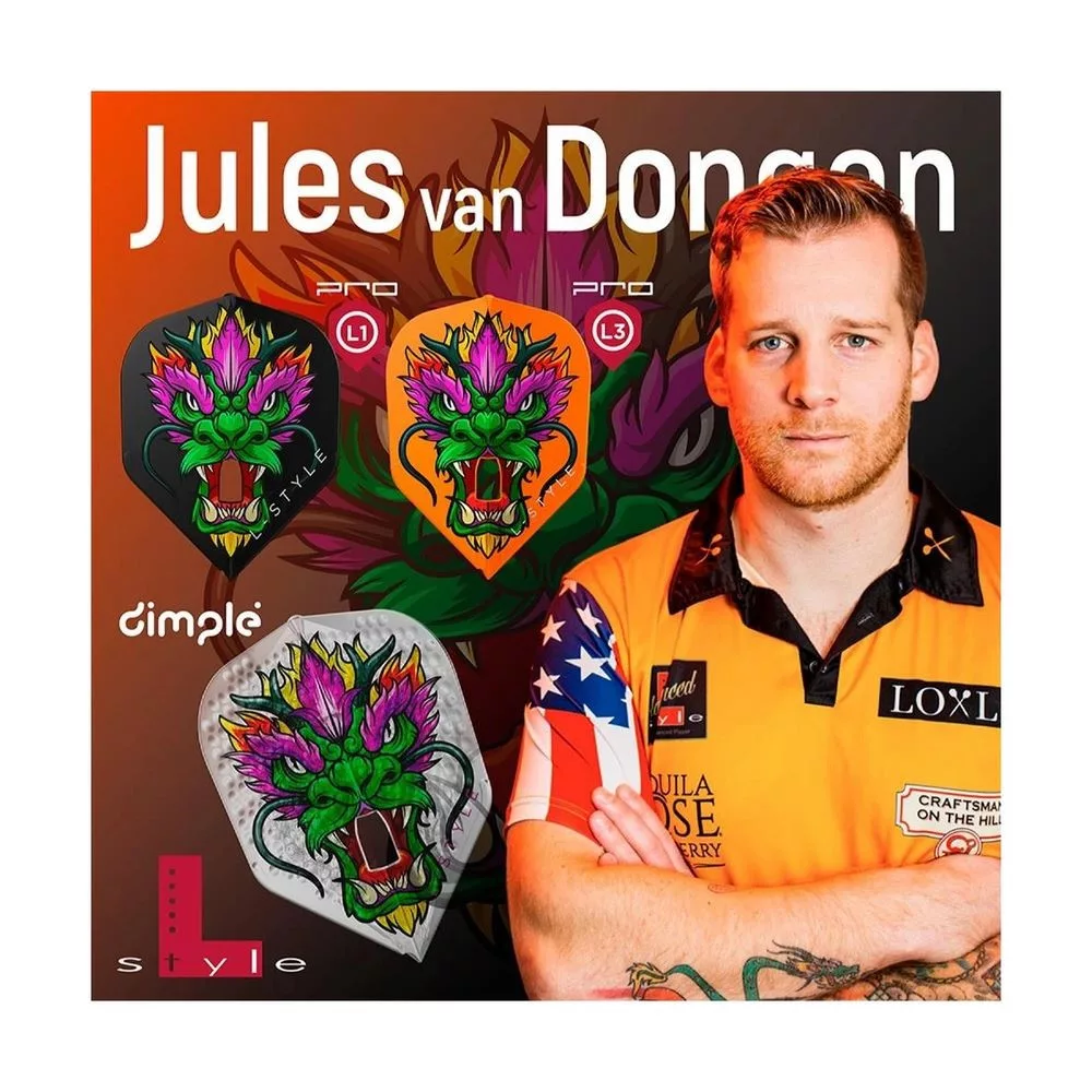 Letky na šípky L-Style v spolupráci s Julesom Van Dongenom prinášajú nielen výnimočný vzhľad, ale aj profesionálne vlastnosti. Vďaka svojej kvalite sú vhodné pre všetky úrovne hráčov – od rekreačných po turnajových.