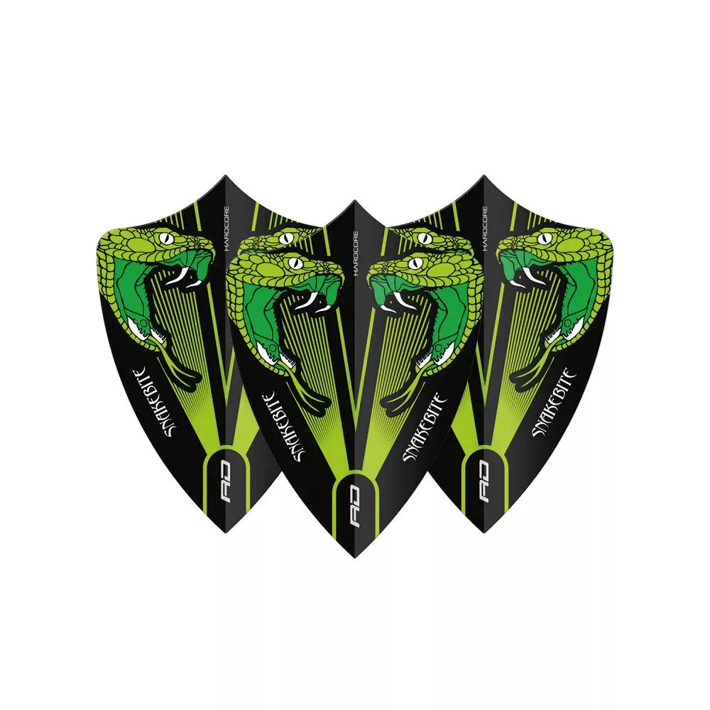 Predajné balenie obsahuje 3 letky na šípky Red Dragon Freestyle Peter Wright Snakebite zelené, 100 mikrónové.