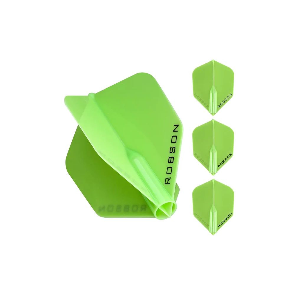 Predajné balenie obsahuje 3 letky na šípky Robson Plus No6, zelené.