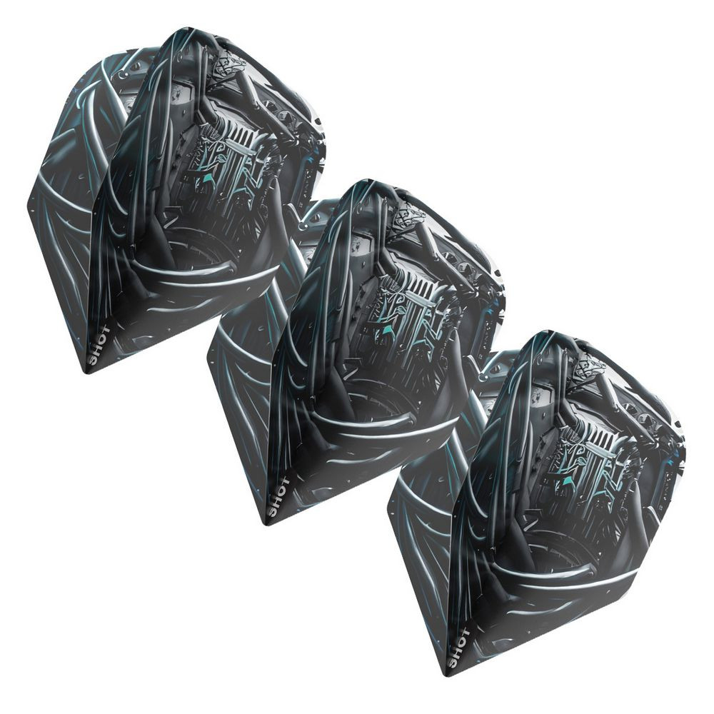 Predajné balenie obsahuje 3 kusy letiek na šípky Shot AI Cyberpunk, No6.