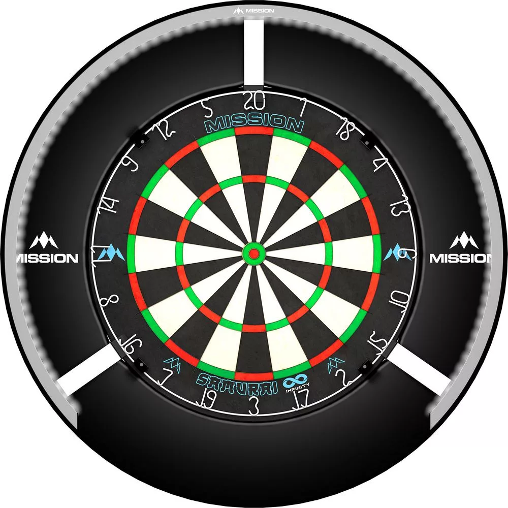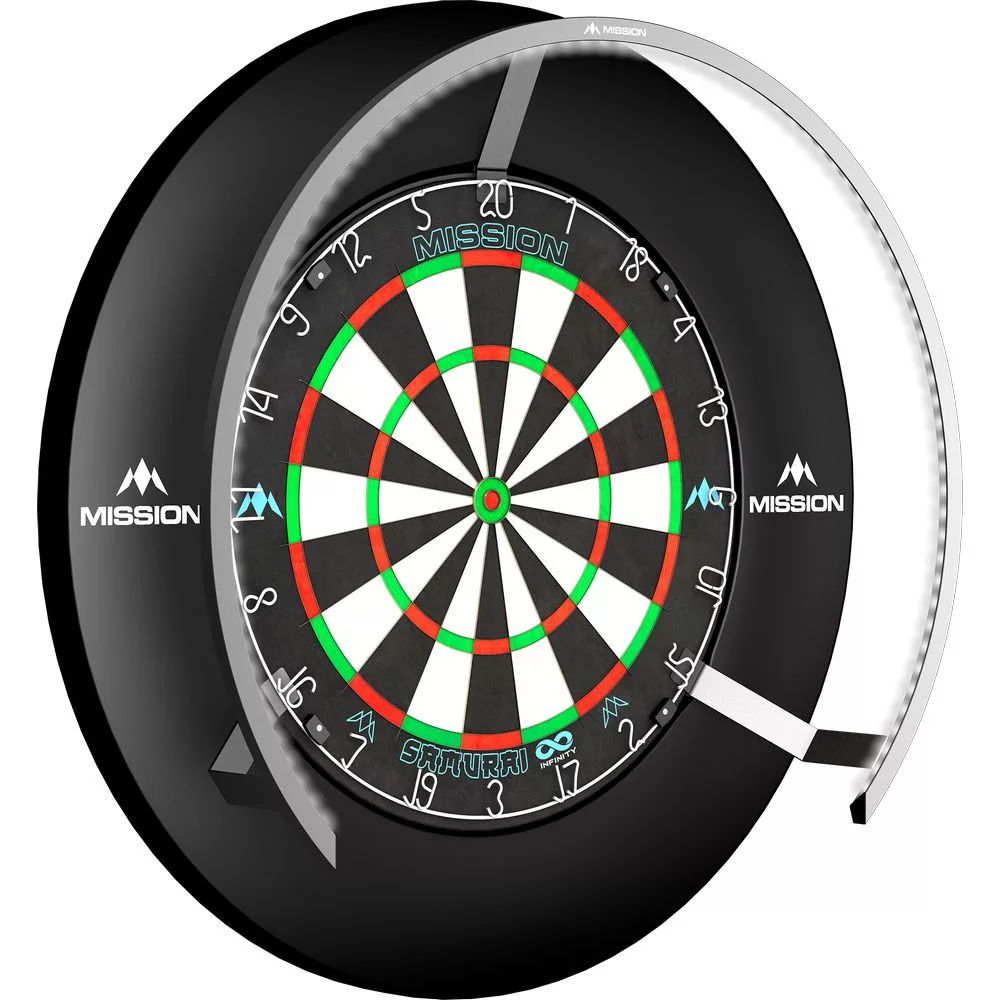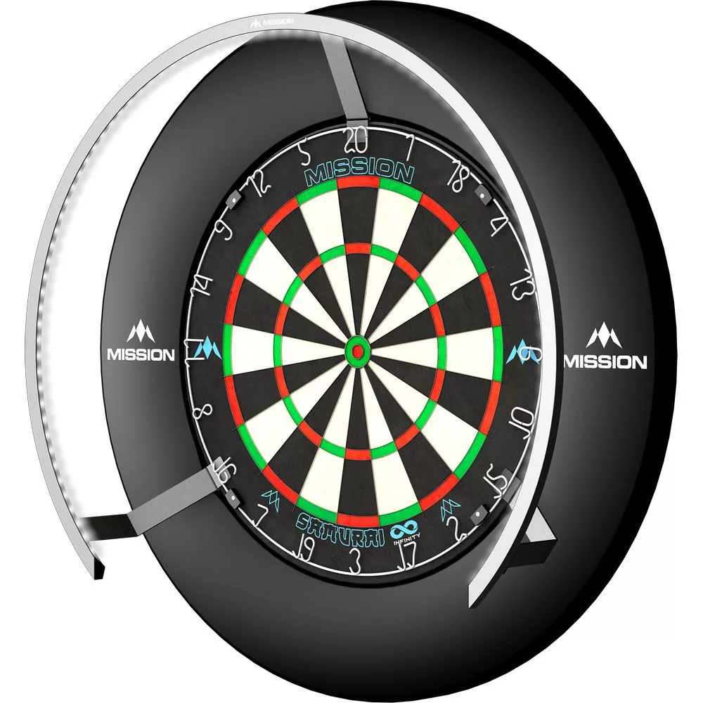 Ľahký rám poskytuje jasné biele osvetlenie pomocou LED pásika, ktorý plne osvetľuje terč bez vrhania tieňov alebo oslňovania hráčov. Vnútorný okraj svetelnej lišty je naklonený o 25 stupňov, aby sa na terč dostalo ešte viac svetla.