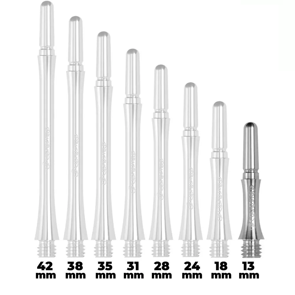 - Najmä pre hráčov, ktorí preferujú rýchlejší prejav šípky, alebo používajú dlhšie telá. Pri tejto dĺžke je nastavenie kompaktnejšie.
