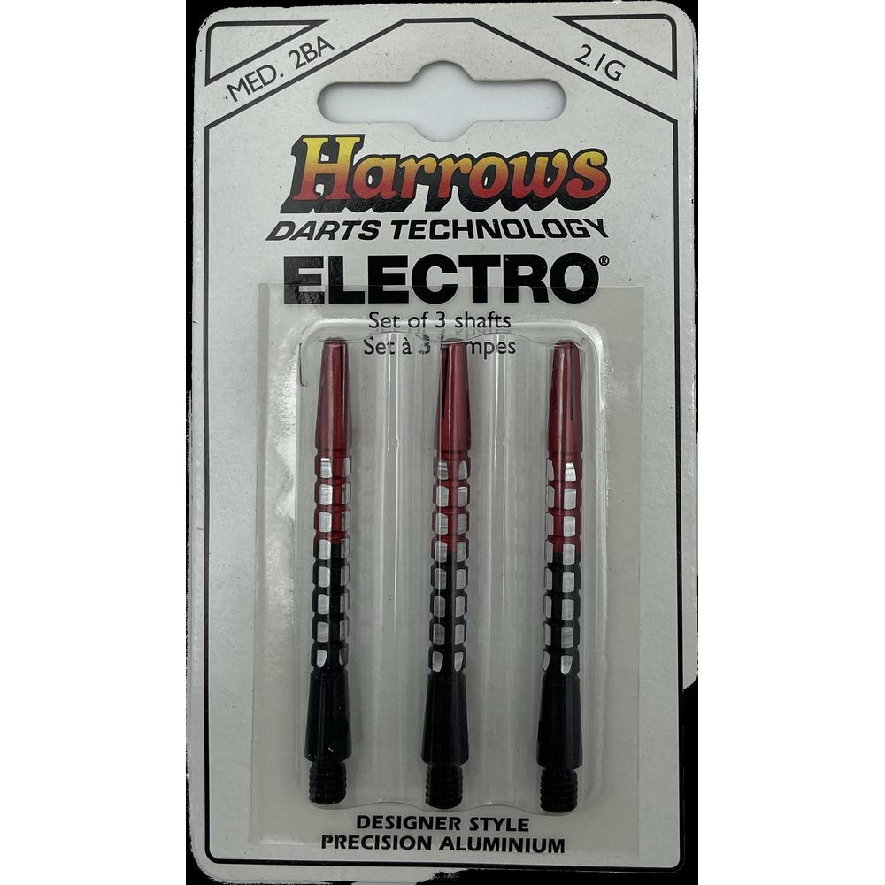 Predajné balenie obsahuje 3 kusy násadiek na šípky Harrows Electro červené, hliníkové, dlhé 47mm.