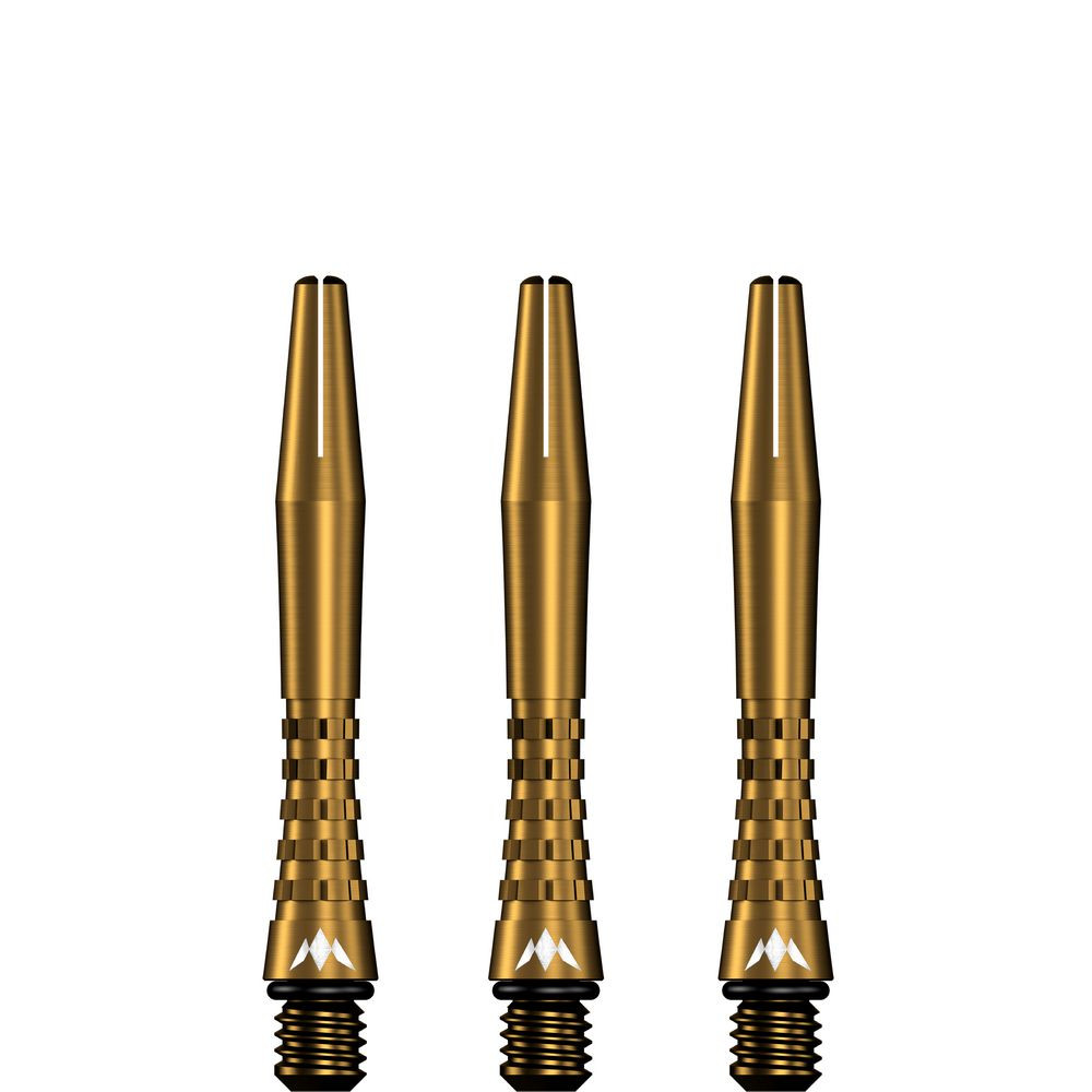 Predajné balenie obsahuje 3 kusy násadiek na šípky Mission Atom13 hliníkové, zlaté, krátke 35mm.