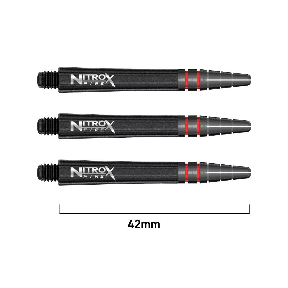 Predajné balenie obsahuje 3 násadky na šípky Red Dragon Nitro XFire čierne, dlhé 42mm.