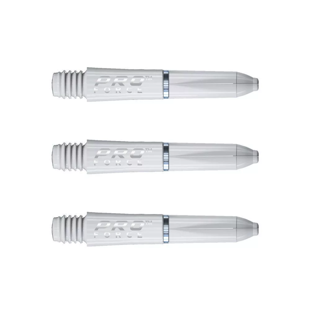 Set obsahuje 3 kusy násadiek Winmau Pro Force biele, extra krátke.