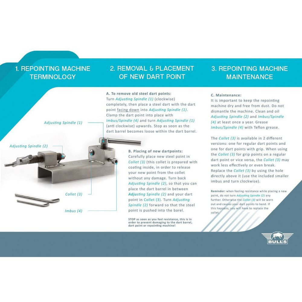 Urobte zo svojich šípok opäť ostré nástroje víťazstva! Bull's Repointing Machine je špecializovaný nástroj pre rýchlu, efektívnu a bezpečnú výmenu hrotov na steel šípkach. Navrhnutý s dôrazom na praktickosť a všestrannosť, tento repointovací stroj zjednodušuje celý proces výmeny – od odstránenia starých hrotov až po presné nasadenie nových.