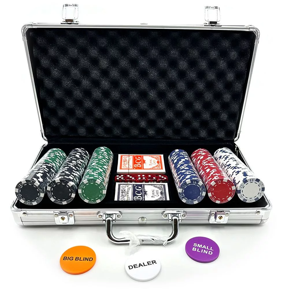 Kvalitný klasický pokrový set v hliníkovom kufríku. 300 kusov neočíslovaných žetónov o hmotnosti 11,5 gramov.