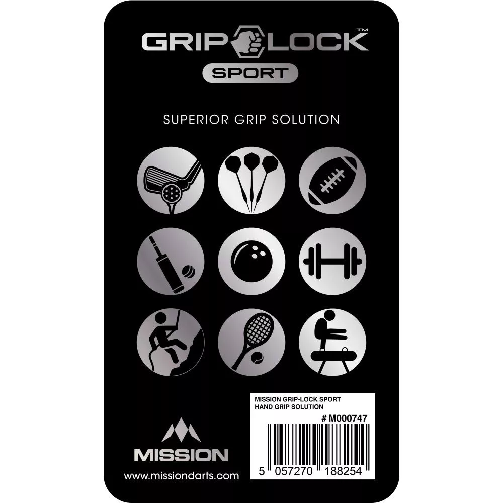 Tekutý športový prípravok Mission-Grip Lock je fantastickým doplnkom vhodným pre celý rad športov, vrátane šípok. Ľahko sa aplikuje a bojuje proti potu a vlhkosti, vďaka čomu získate silný a pevný úchop šípok. Účinnok prípravku trvá asi 4 hodiny.