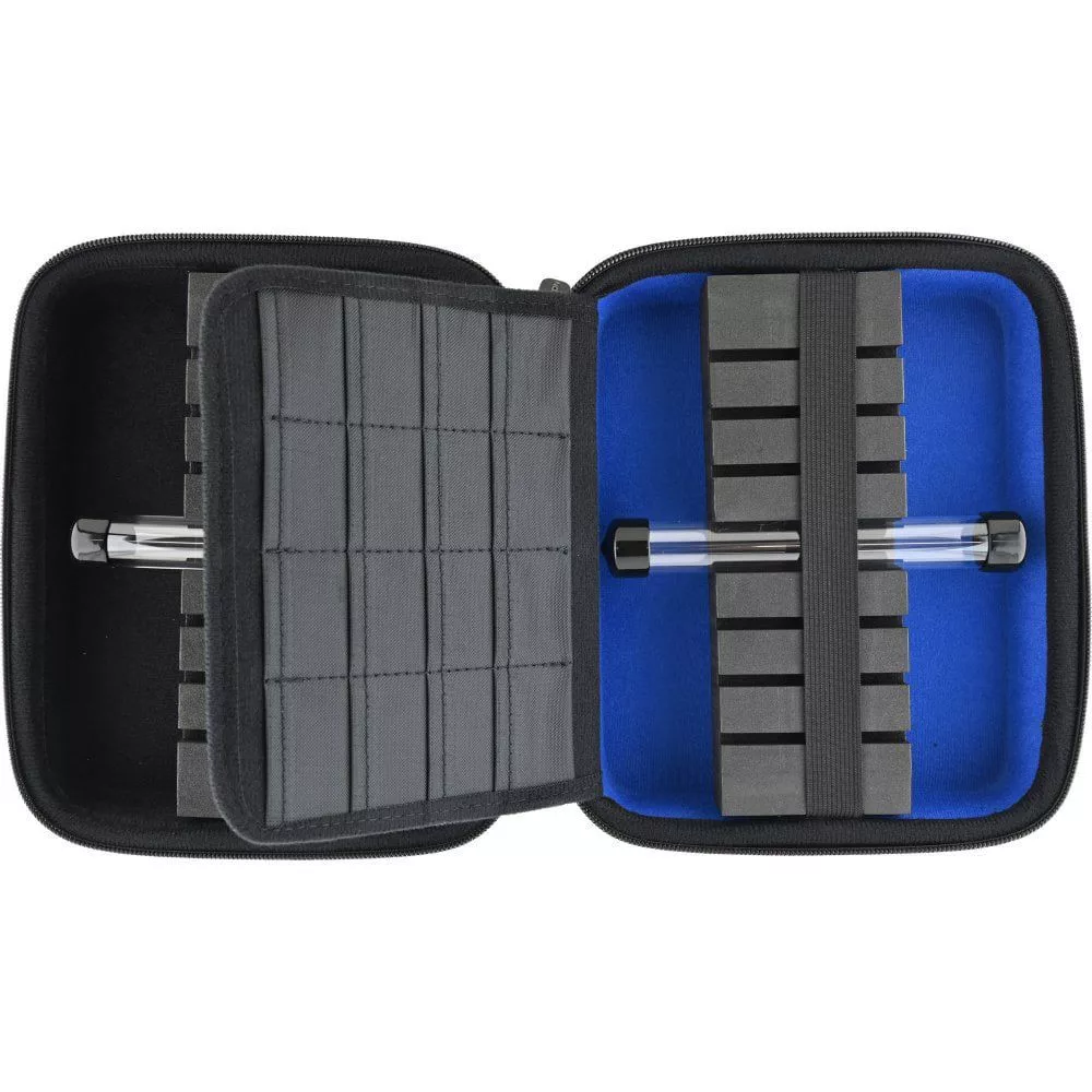 Mission Luxor je štýlové a robustné extra veľké puzdro na šípky vyrobené z odolného materiálu EVA. Luxor obsahuje dve nastaviteľné EVA vložky, ktoré vám umožnia bezpečne uložiť a prepraviť štyri kompletné sady zostavených šípok. Súčasťou puzdra sú dve vyberateľné tuby, ideálne na uloženie hrotov a iného drobného príslušenstva. Puzdro tiež obsahuje šestnásť vreciek na uloženie letiek, pätnásť samostatných vreciek na uloženie násadiek a ďalšiu veľkú priehradku na zips. Luxor je vyrobený tak, aby vždy ochránil uložený obsah, vložka EVA pevne uchopí šípky a dva elastické popruhy poskytujú dodatočnú bezpečnosť. Puzdro sa dá pohodlne prenášať a vyzerá jednoducho úchvatne.