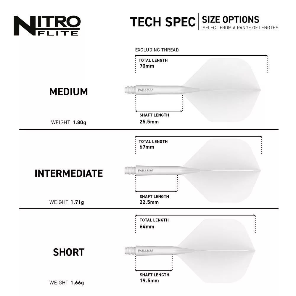 Áno, Nitro Flite je dostupný v dĺžkach Short, Intermediate a Medium – tento model je v strednej verzii (Intermediate).