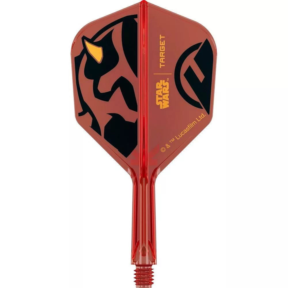 Nechajte sa viesť Temnou stranou Sily! K-Flex integrované letky a krátke násadky v dizajne Darth Maula sú oficiálnou edíciou Target vytvorenou v spolupráci s The Walt Disney Company. Kombinujú ikonickú červeno-čiernu farebnosť, zlatý motív rohov a moderný patentovaný K-Flex systém, ktorý spája letku a násadku do jedného pevného a flexibilného celku. Flexibilná letka minimalizuje odskoky a zvyšuje presnosť vďaka pružnosti pri kontakte so šípkami. Špičkový polymér zaručuje odolnosť a perfektný let – presne ako temná elegancia Darth Maula.