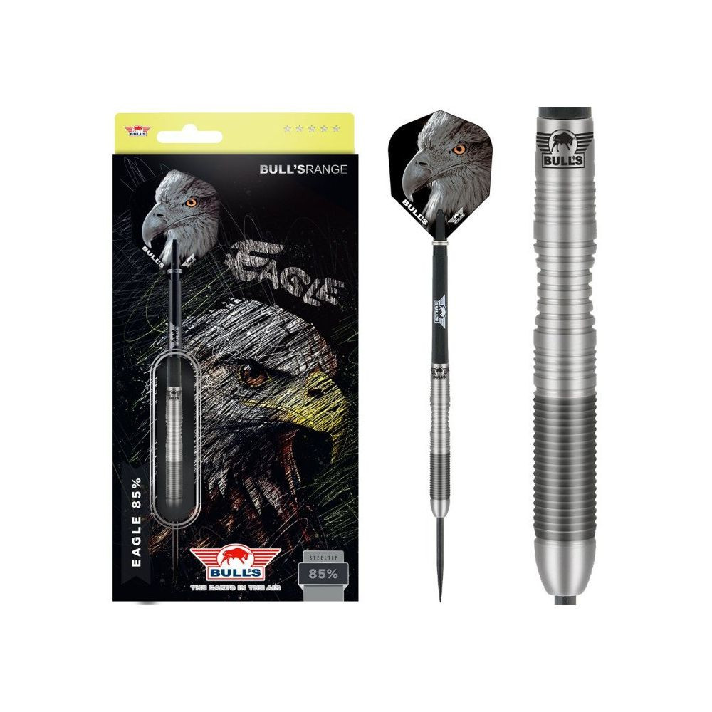 Šípky Bulľs Eagle 2 sú 85% volfrámové šípky, ktoré majú pekné rovné telíčka s vybraním v strede. Sada steel šípok Eagle má mini žraločie drážky v kombinácii s hrubšími žraločími drážkami.