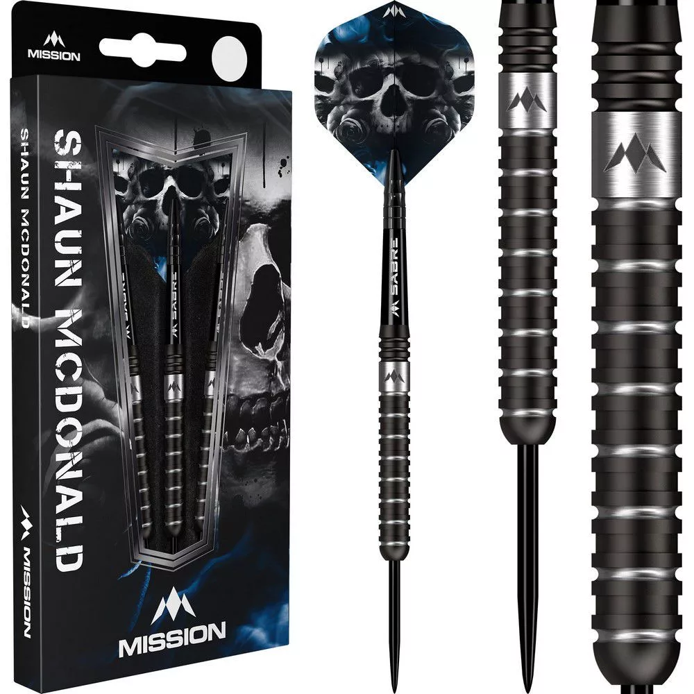 Šipky Mission Shaun McDonald se vyznačují rovným designem telíčok a býčím nosem s radiálnymi drážkami po celej dĺžke. Šípky majú výrazný čierny PVD povlak, strieborné prepracované detaily a gravírované logo Mission v zadnej časti.