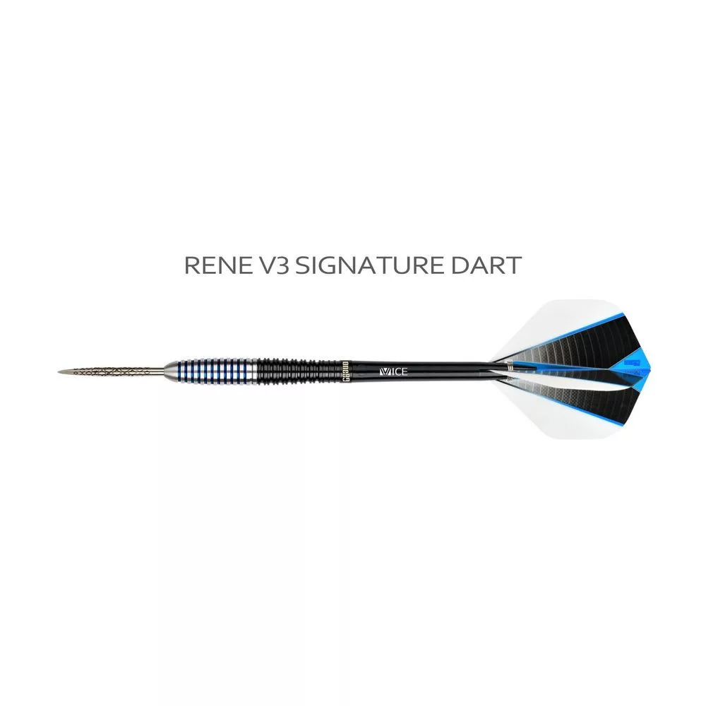 Sada steel šípok ONE80 Rene Eidams V3 s pevne nalisovanými kovovými hrotmi je určená do bežných