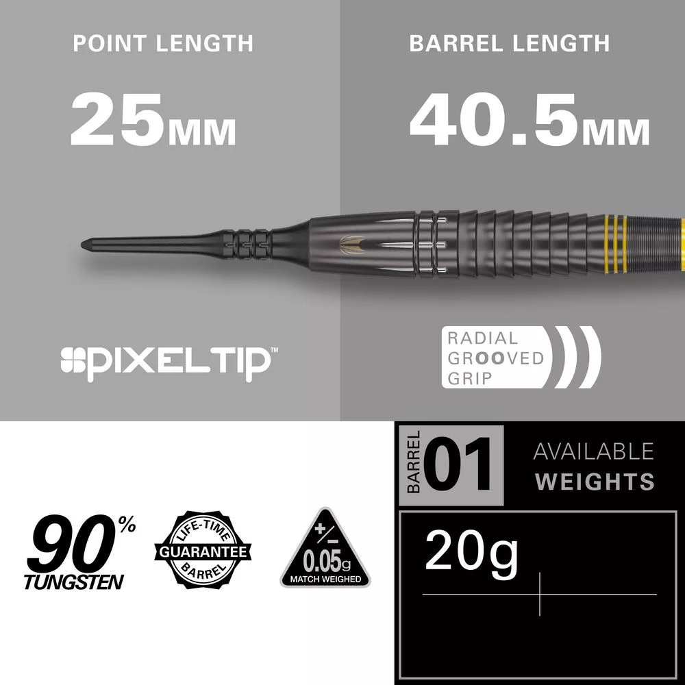 Šípky soft Target Scott Williams Black 20g – Výkon navrhnutý „Shaggym“