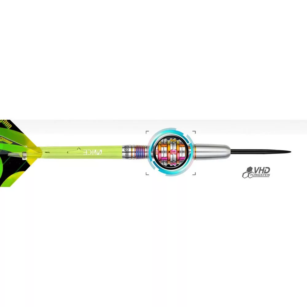 Precízny návrh a použitie najkvalitnejšej zliatiny volfrámu VHD umožnilo vytvoriť tieto aerodynamické a dokonale vyvážené šípky Chameleon Apatite.