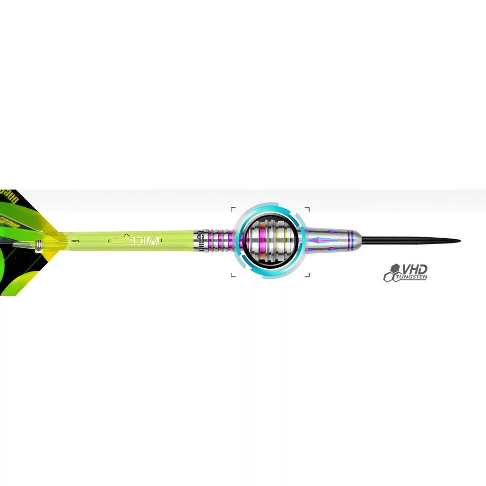 Šípky One80 Chameleon VHD sú vyrábané v rôznych tvaroch a pokryté veľmi krásnym dúhovým efektom. Uchopenie šípok je veľmi pohodlné a šípky sú veľmi dobre vyvážený na stred. Vyrobené sú z vysoko kvalitného 90% VHD volfrámu a veľmi precízne ručne opacované!