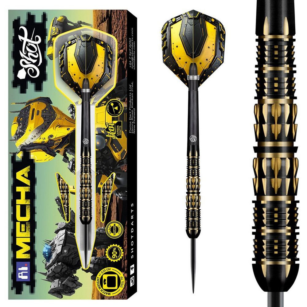Shot AI Mecha 24g – unikátnu sadu steel šípok, ktorá kombinuje futuristický dizajn s vysokovýkonnými technológiami pre profesionálnu hru. Navrhnuté tak, aby dominovali pri každom hode, tieto šípky z 90 % wolfrámu prinášajú stabilitu, kontrolu a presnú opakovateľnosť pri každom hode.