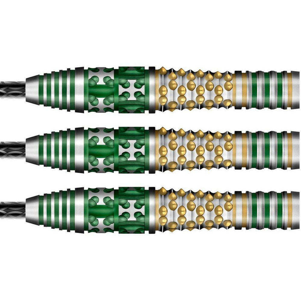 Oháňaj sa kopijou a chváľ svoje parohy. Sada šípok Cernunnos zachytáva múdrosť tohto strážcu lesa a mystického keltského boha zvierat a divokej krajiny zahalenej hmlou. So svojou zložitou textúrou, keltskými krížmi a čeľusťami z briaru vyrezávanými ako kôra mohutných dubov a potiahnutými zelenou a zlatou farbou vám tieto šípky z 90% volfrámu pomôžu vidieť stromy v lese.