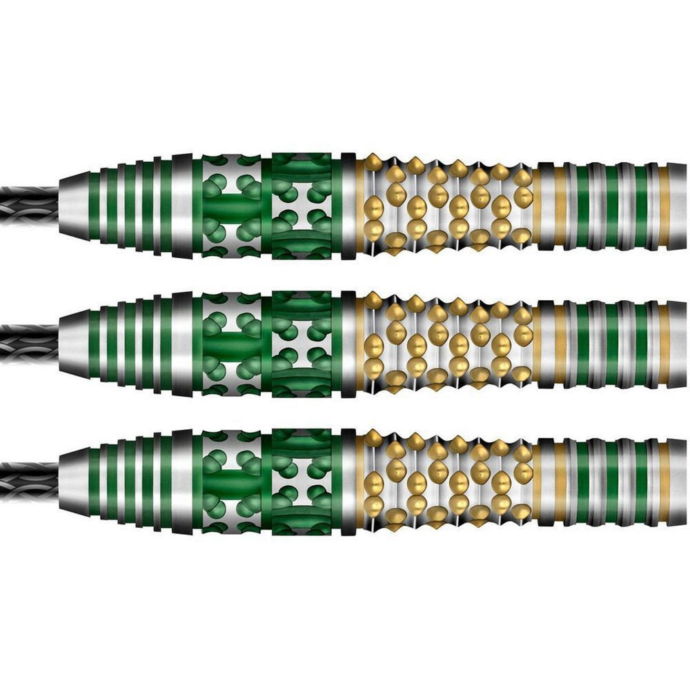 Oháňaj sa kopijou a chváľ svoje parohy. Sada šípok Cernunnos zachytáva múdrosť tohto strážcu lesa a mystického keltského boha zvierat a divokej krajiny zahalenej hmlou. So svojou zložitou textúrou, keltskými krížmi a čeľusťami z briaru vyrezávanými ako kôra mohutných dubov a potiahnutými zelenou a zlatou farbou vám tieto šípky z 90% volfrámu pomôžu vidieť stromy v lese.
