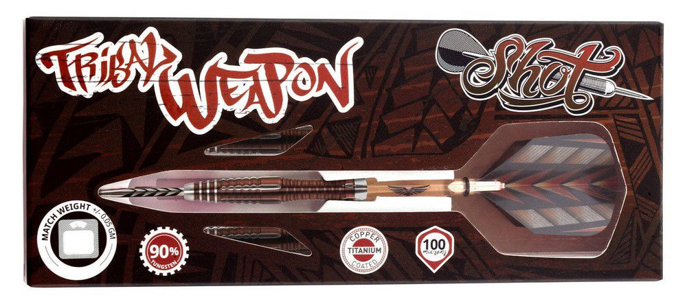 Pripravte sa na boj so šípkami Tribal Weapon. Tieto šípky od firmy Shot, boli inšpirované starovekými bojovými umeniami v tichomorskom a ázijskom regióne. Sada šípok Tribal Weapon bola navrhnutá pre skúsených alebo súťažných hráčov a má skvelý úchop, aby prekabátili súpera. Najjemnejší 90% volfrám prechádza peklom - intenzívnym 7-stupňovým procesom - aby dosiahol jemnú povrchovú úpravu. Povrch je ošetrený ultra odolným, 1 mikrónovým povlakom z nitridu medi a titánu, znova opracovaným pre silu a krásu. Ak hľadáte konkurenčnú výhodu, Tribal Weapon je vašou zbraňou.