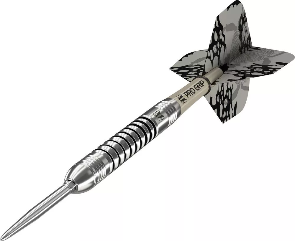 Predajné balenie obsahuje 3 kusy kompletných steel šípok Target Exo 03 SP 21g, 90% wolfram a nástroj na výmenu hrotov Swiss Point.