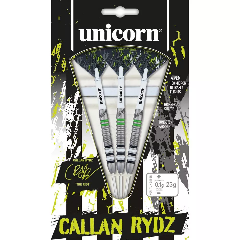 Predajné balenie obsahuje 3 kusy kompletných steel šípok Unicorn Callan Rydz 23g, 80% wolfram.