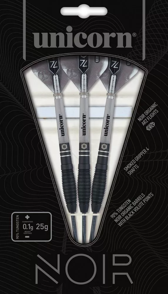 Rad šípok Unicorn Noir v sebe spája eleganciu a štýl. Precízne skonštruované čierne šípky sú potiahnuté nitridom titánu, vyrobené sú z 90% volfrámu s laserom vyrytým znakom Unicorn.