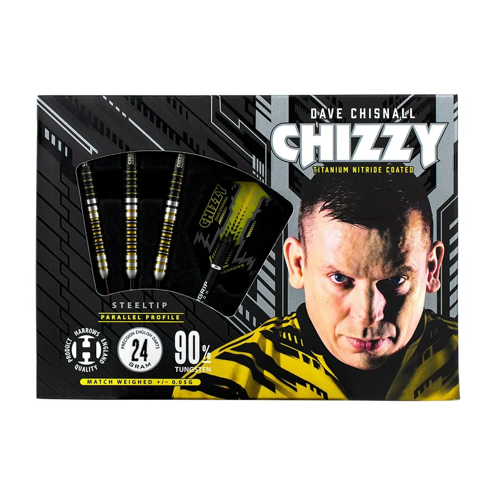 Dizajn šípok je inšpirovaný svetovou šípkarskou hviezdou Daveom "Chizzy" Chisnallom. Strieborná, čierna a žltá farebná kombinácia odráža dynamiku a štýl Chizzyho samotného. Súčasťou balenia sú Supergrip Carbon násadky, ktoré zaručujú pevné uchopenie, a letky Harrows Prime Chizzy FB7532, ktoré poskytujú presnú kontrolu letu.