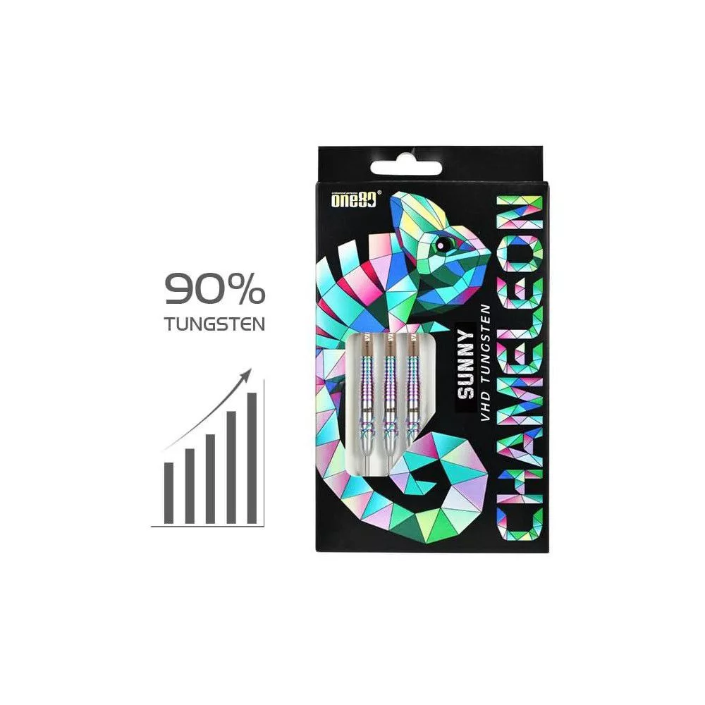 Predajné balenie obsahuje 3 kusy šípok ONE80 steel Chameleon Sunny 22g, 90% wolfram.