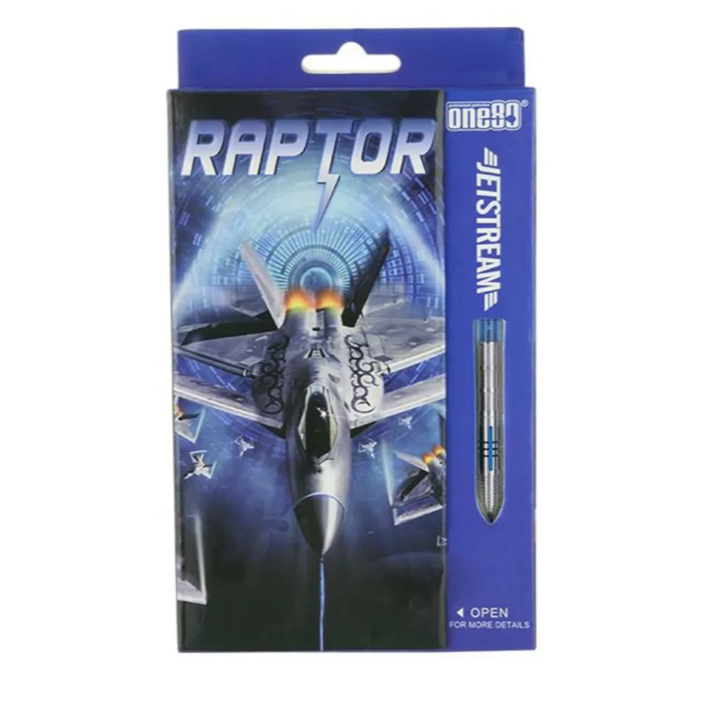 Predajné balenie obsahuje 3 kompletné steel šípky ONE80 Jetstream Raptor 24g, 90% wolfram.