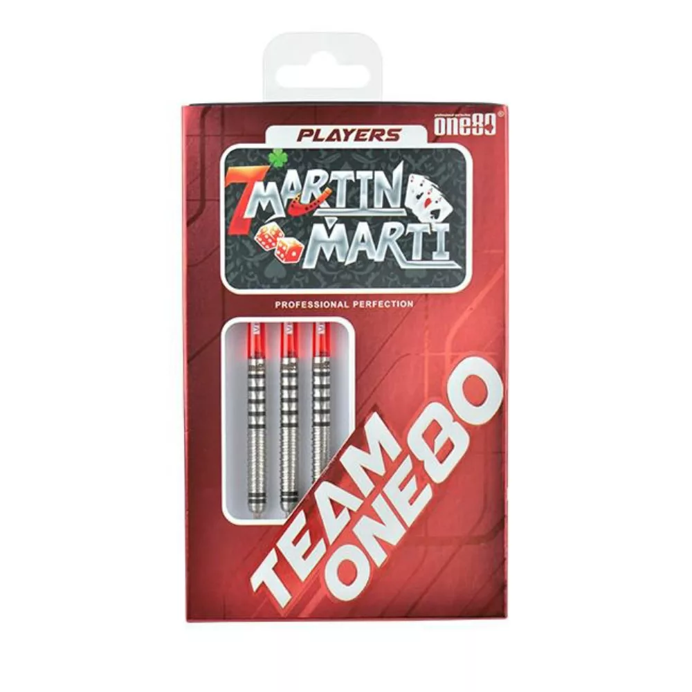 Predajné balenie obsahuje 3 kompletné steel šípky ONE80 Martin Mart's Dart 21g, 90% wolfram.