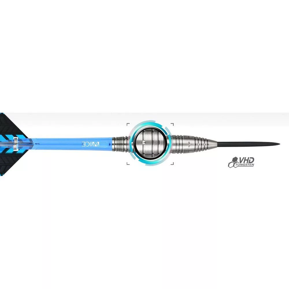 Profesionálna sada steel šípok, s čiernymi kovovými hrotmi, obsahuje tiež Vice dlhé násadky a čierno-modré letky. Telíčka šípok sú farebne rozdelené na viac zón úchopu, ktoré majú na sebe rôzne typy drážok.