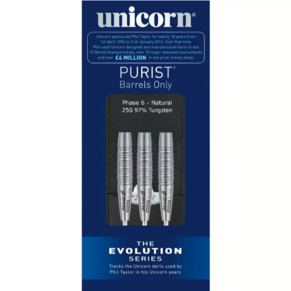 Sériu Evolution používal Phil Taylor. Unicorn sponzoroval Phila Taylora takmer 18 rokov od 1. apríla 1996 do 31. januára 2014. Kvalitné strieborné šípky s obsahom volfrámu 95%.