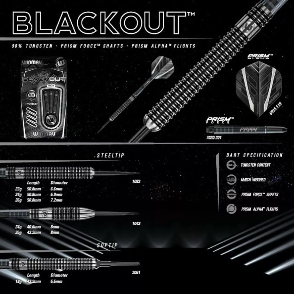 Šípky Black Out ponúkajú klasický dizajn telíčok kombinovaný s ohromujúcim moderným štýlom. Telíčka s drážkami po celej dĺžke s dokonalou priľnavosťou, rovnováhou a pocitom navrhnutým pre skúsených hráčov.