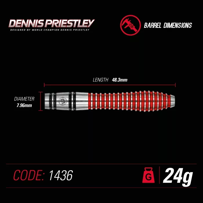 Tieto steel šípky špeciálne edície sú dôkazom neuveriteľnej kariéry dvojnásobného majstra sveta Dennisa Priestleyho a sú znakom úcty k jednej zo skutočných svetových legiend a veľkého propagátora tejto hry.