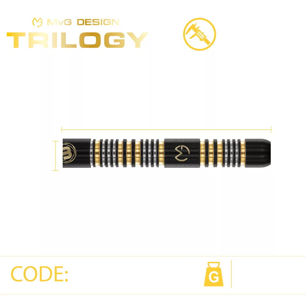 Sada šípok MvG Trilogy bola inšpirovaná úspechmi profesionálneho hráča Michaela van Gerwena, známeho pod skratkou MvG, či ako "Mighty Mike" alebo ako "zelená mašina". Doteraz získal 3x titul majstra sveta PDC a viac ako 140 víťazstiev na významných turnajoch. Telíčka šípok MvG Trilogy majú po sebe podobne umiestnené drážky ako predchádzajúce rady MvG šípok, no teraz v zlato - striebornej farebnej kombinácii.
