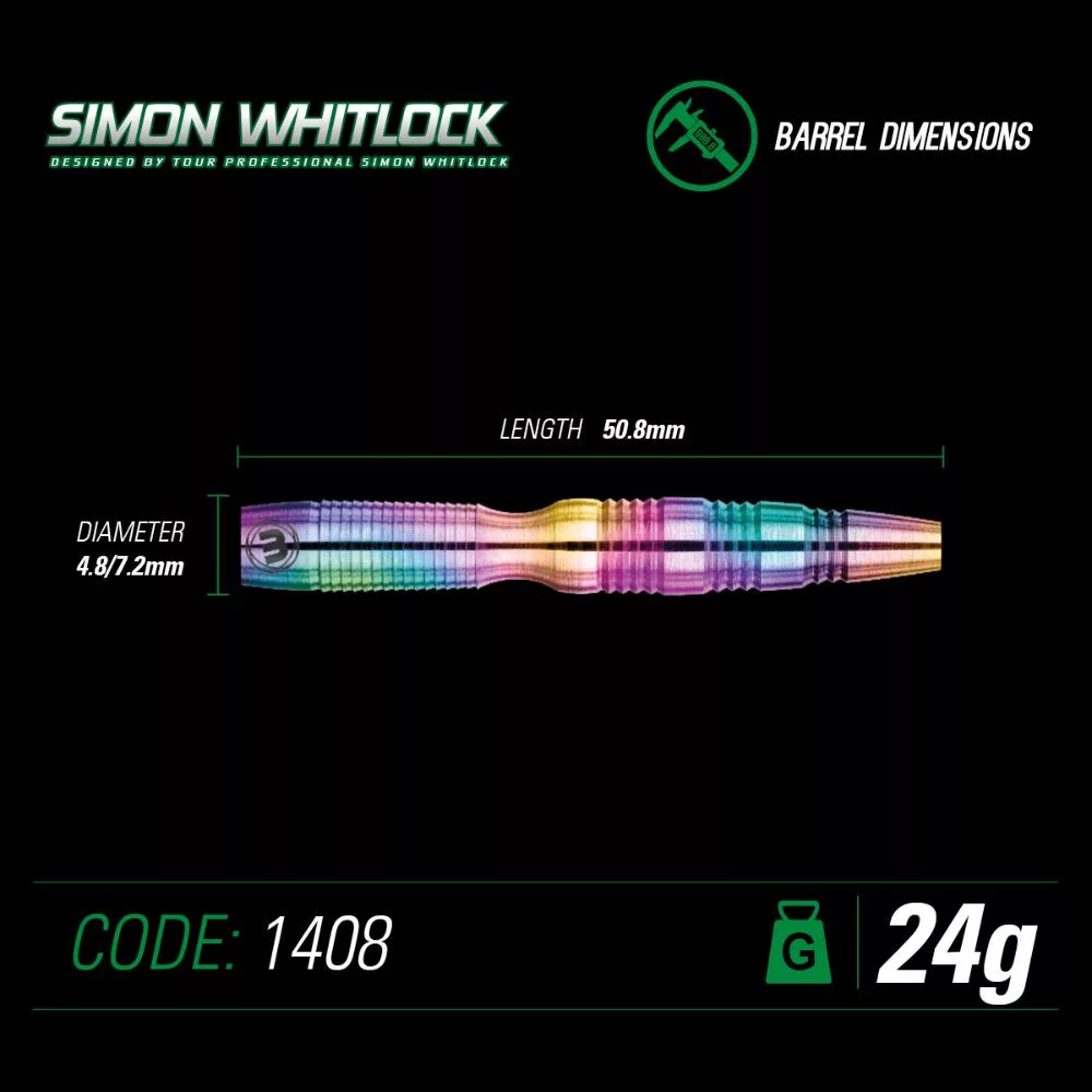 Balenie obsahuje 3 kompletné steel šípky Winmau Simon Whitlock 24g, 90% wolfram Urban Grip a hliníkový kryt na hroty šípok.