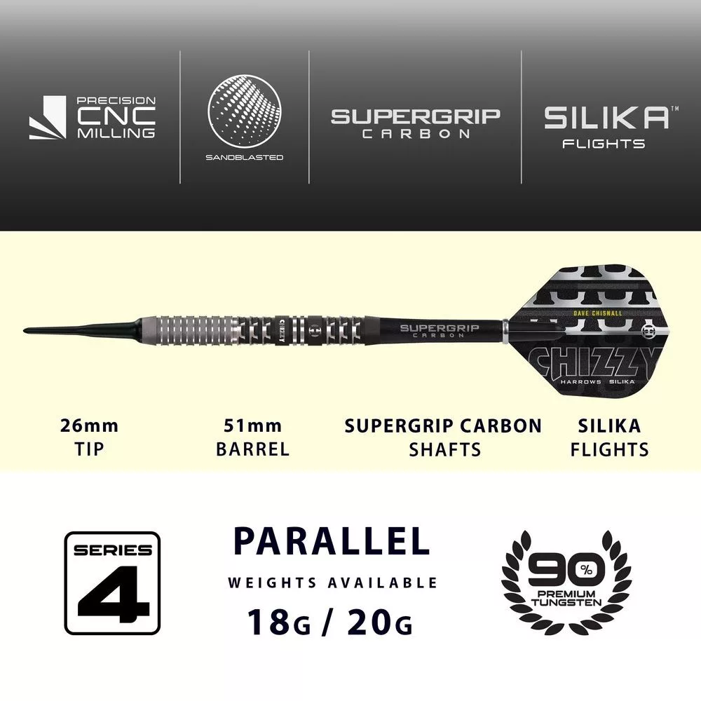 Vyskúšajte presnosť a dizajn navrhnutý pre šampiónov! Harrows Chizzy Series 4 – šípky, ktorým dôveruje Dave „Chizzy“ Chisnall.