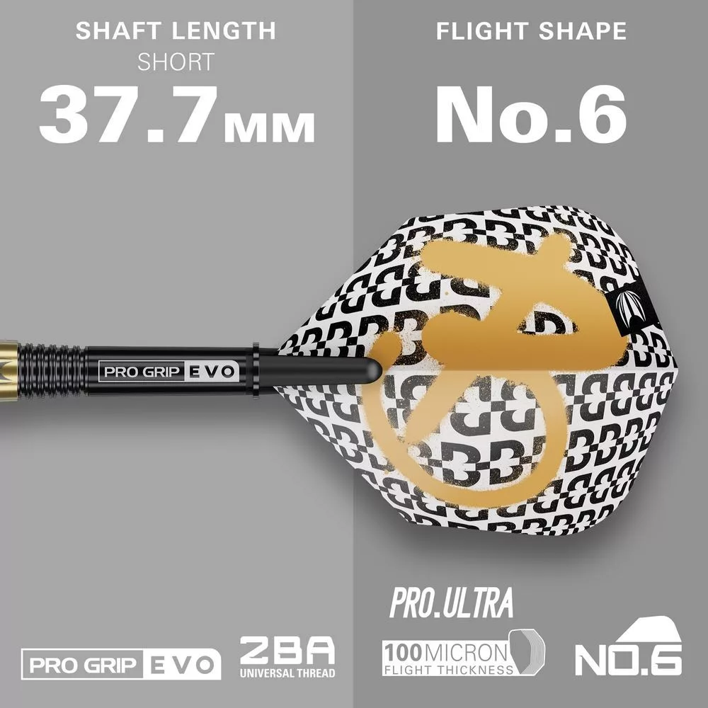plastovými hrotmi Target Pixel 2BA Soft, ktoré poskytujú spoľahlivý výkon a dobrú životnosť na elektronických terčoch. Prechod medzi hrotom a telom je plynulý a vyvážený.