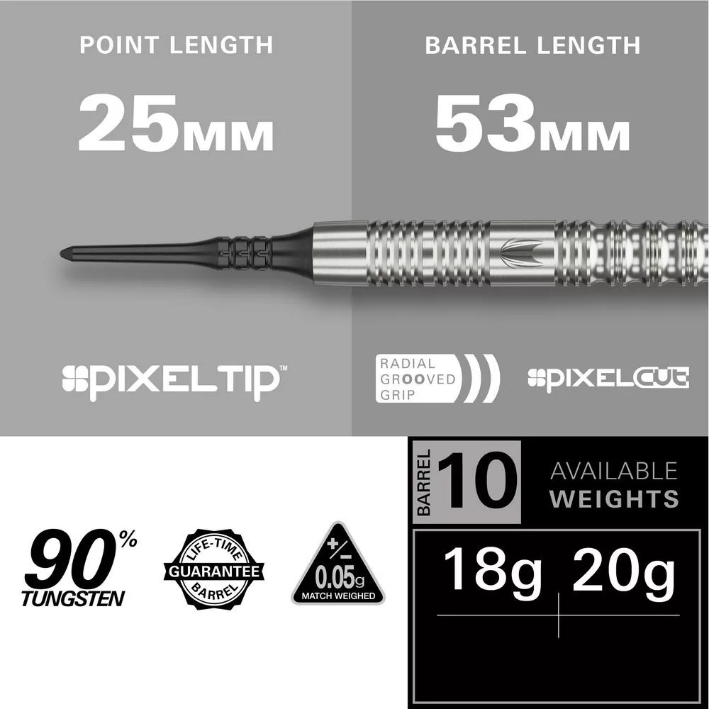 - Pixel soft tip hroty: Čierne plastové hroty (2BA) sú navrhnuté tak, aby minimalizovali odrazy a zároveň vydržali dlhodobé hranie.