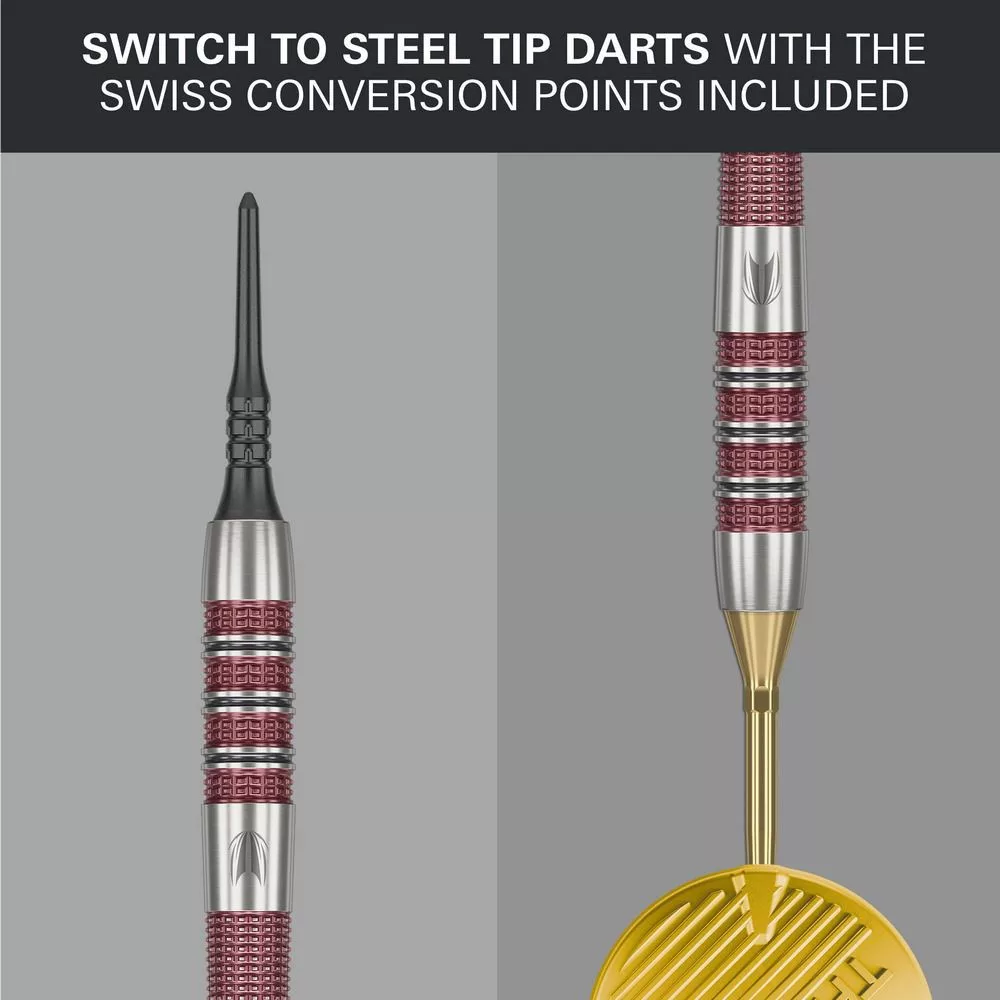 - Hroty: Plastové softip hroty Target Pixel 2BA – navrhnuté pre elektronické terče