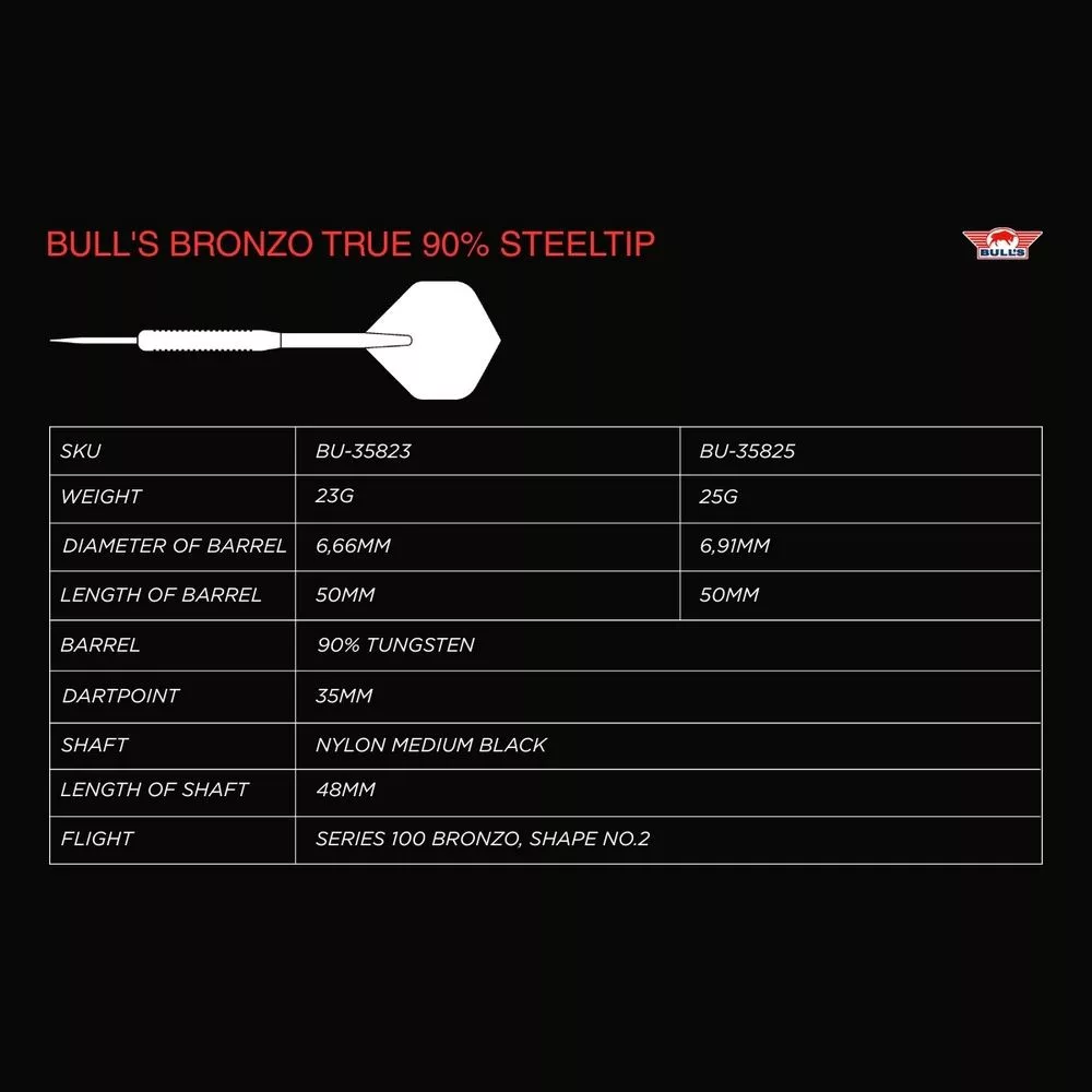 Šípky steel Bull's Bronzo True 23g 90% wolfram – Sila, precíznosť a dizajn pre náročných hráčov